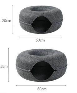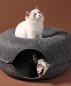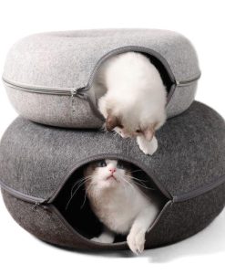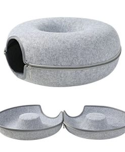 What sets our Donut Cat Bed apart is its innovative dual-use design. Not only does it provide a snug and secure place for your cats to rest, but it also doubles as an interactive play tunnel. The easy-to-clean zipper design ensures that maintenance is a breeze, and the durable felt material ensures long-lasting use. Your cats will love the comfortable haven it provides, and you’ll appreciate its stylish appearance in your home.