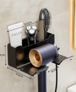 Our hair dryer holder is particularly useful in bathrooms with limited counter space. It’s perfect for daily use, providing easy access to your hair dryer and other essentials. Its wall-mounted design makes it a great fit for any bathroom, large or small, and its versatility extends to other rooms in need of organized storage solutions.