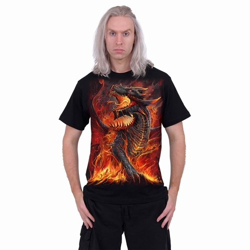 Wings of charred sulphur envelope the suffocating heat burning from within this dragon’s belly. Molten lava seeps from every crack along her body, dripping to the ground where furious flames whip and lick at her feet.