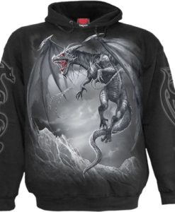 Tethered to the mountainous landscape for decades, this fearsome dragon has broken the shackles that kept her grounded. The clouds disperse, those glowing eyes pierce through the fog and her sharp white teeth are the last thing you see. Hoody Black is made of Top Quality 100% Cotton, Fleece using skin friendly, Azo-free, Reactive dyes.
