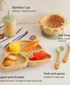 Introducing our exquisite Bamboo Baby Feeding Set, meticulously designed to make your little one’s mealtime a delightful and hassle-free experience. Crafted from premium quality bamboo and adorned with child-friendly silicone suction cups, this set is a perfect blend of functionality and elegance.