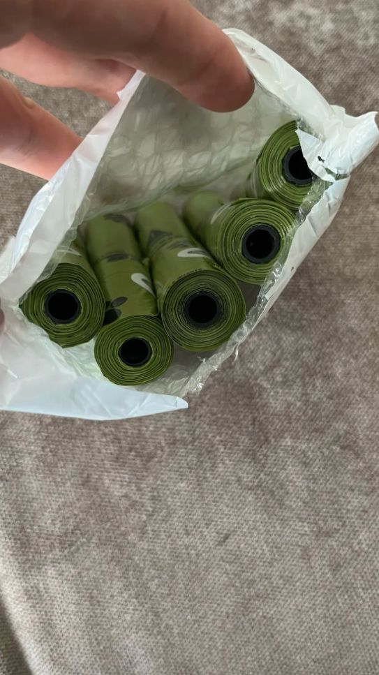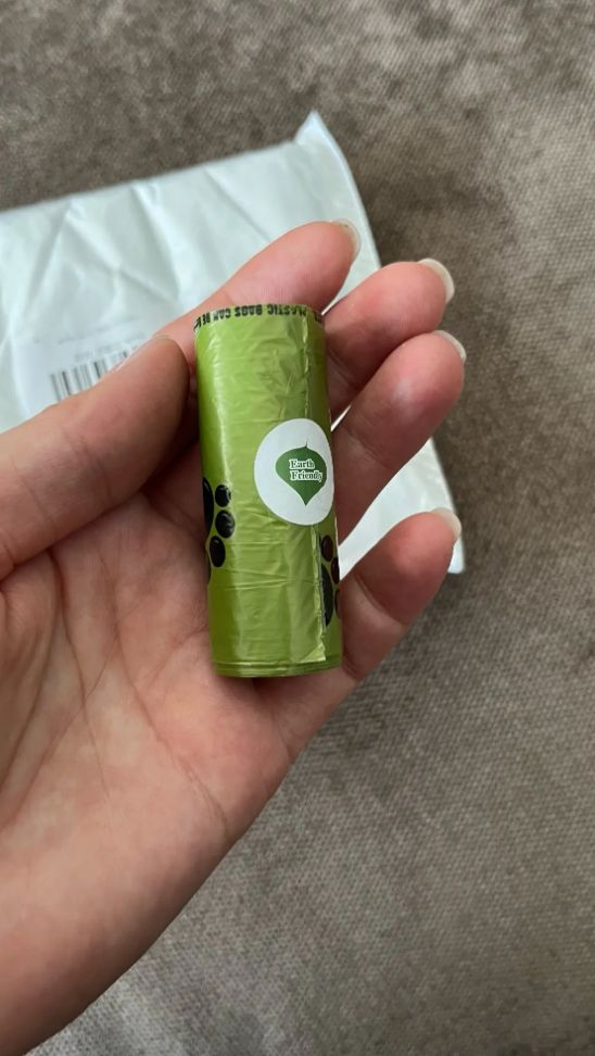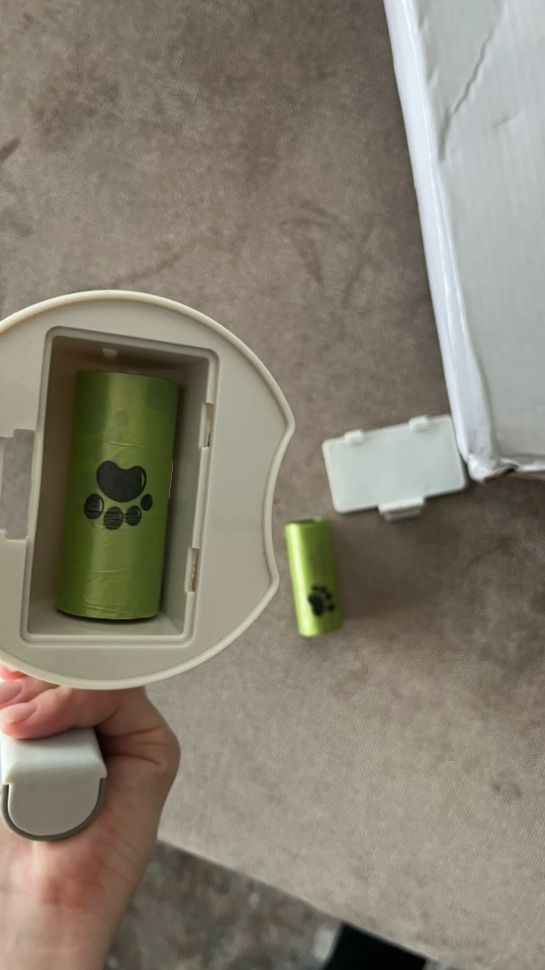 It’s convenient and comes with a generous supply of doggy bag rolls that can line the container portion of the device, which is great.