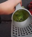 The bags hold much less than the whole scoop, so I removed the bags, and now the scoop holds much more, covering the holes with tape. Now it’s a nice big scoop that can hold a lot.