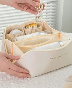 Say goodbye to cluttered and unorganized makeup kits. Embrace the elegance and order that our Elegant Leather Travel Cosmetic Bag brings. It’s not just about holding your cosmetics; it’s about enhancing your travel experience and bringing a touch of luxury to your daily routine.