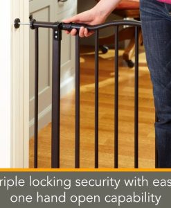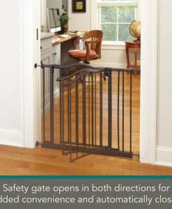 Crafted from heavy-duty metal, the gate promises durability and reliability. The exquisite matte bronze finish not only enhances its visual appeal but also ensures long-lasting color and richness. It’s more than just a pet gate; it’s a long-term addition to your home’s safety and style.