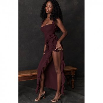 Step into the spotlight and make a statement with our Elegant Summer Ruffle Maxi Dress for Women. This stunning dress is designed to enhance your beauty and confidence, making it the perfect choice for club evenings, elegant parties, and any special occasion where you want to shine. Available in striking red and classic black, this dress is a must-have addition to your summer wardrobe. Crafted with a blend of high-quality polyester and spandex, this dress offers medium stretch for a comfortable and flattering fit. The slash neck and sleeveless tank style add a touch of modern sophistication, while the tiered ruffles and fit-and-flare silhouette create a timeless, feminine look. The ankle-length design with a daring split adds an element of allure, ensuring all eyes are on you.