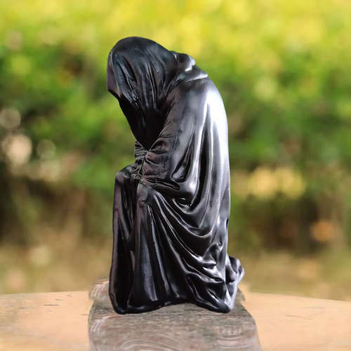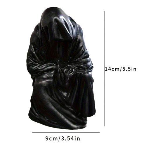 Step into the eerie world of gothic decor with this Faceless Ghost Statue. Crafted with intricate detail, this black-robed figurine makes a captivating addition to any Halloween-themed setting or home decor, reflecting the mystery and horror of the creeper reaper.