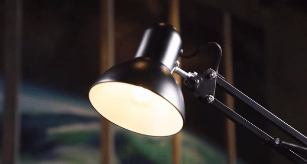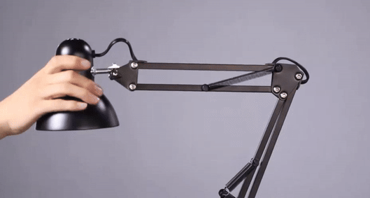 Been using this lamp for a while now. I like it. The spring doesn’t lose strength after a while like some other ones. I use it in the back room, and I don’t like having lights shine directly on me. This was able to turn complete 180 with no problem, so it’s great.
