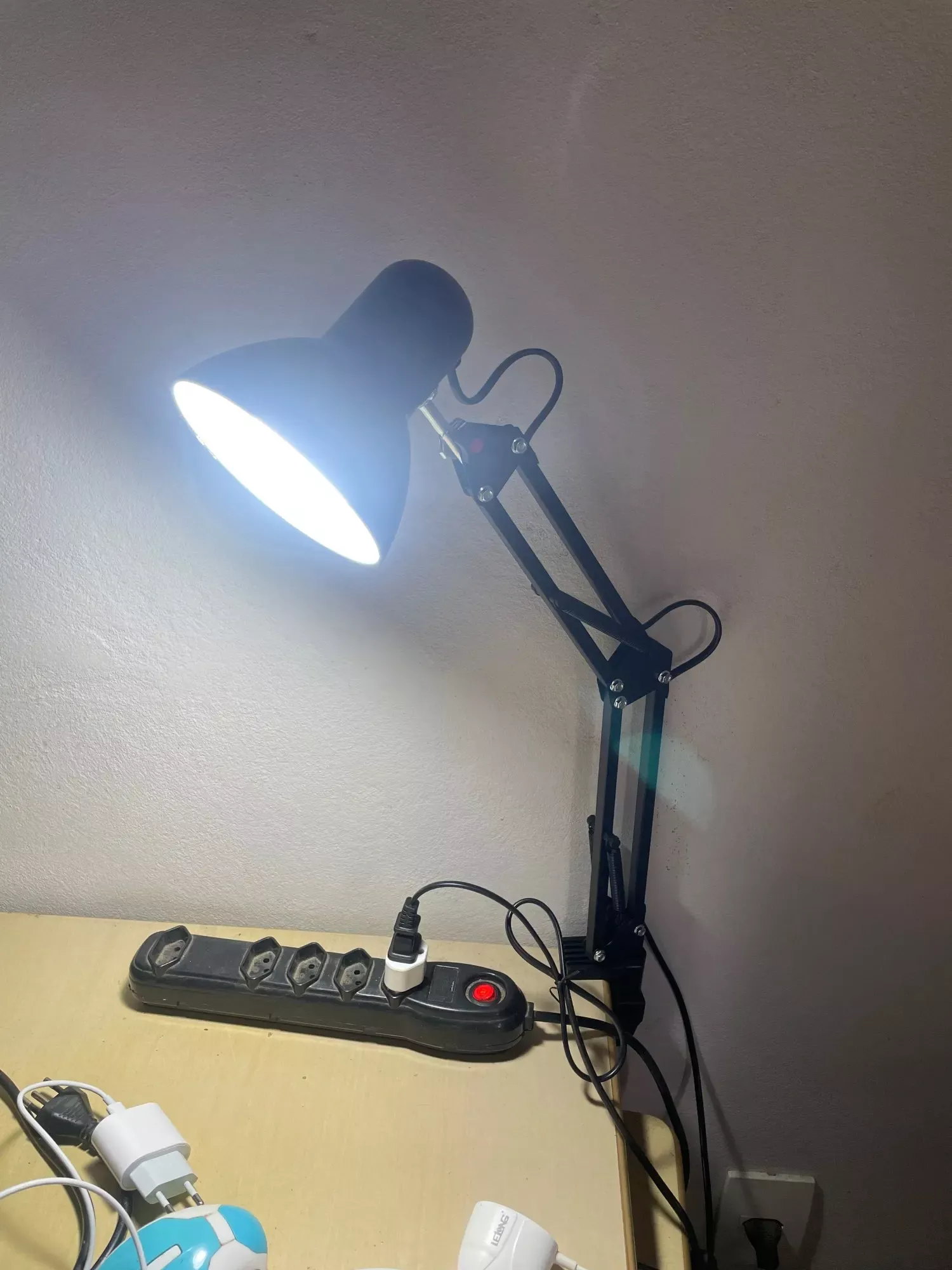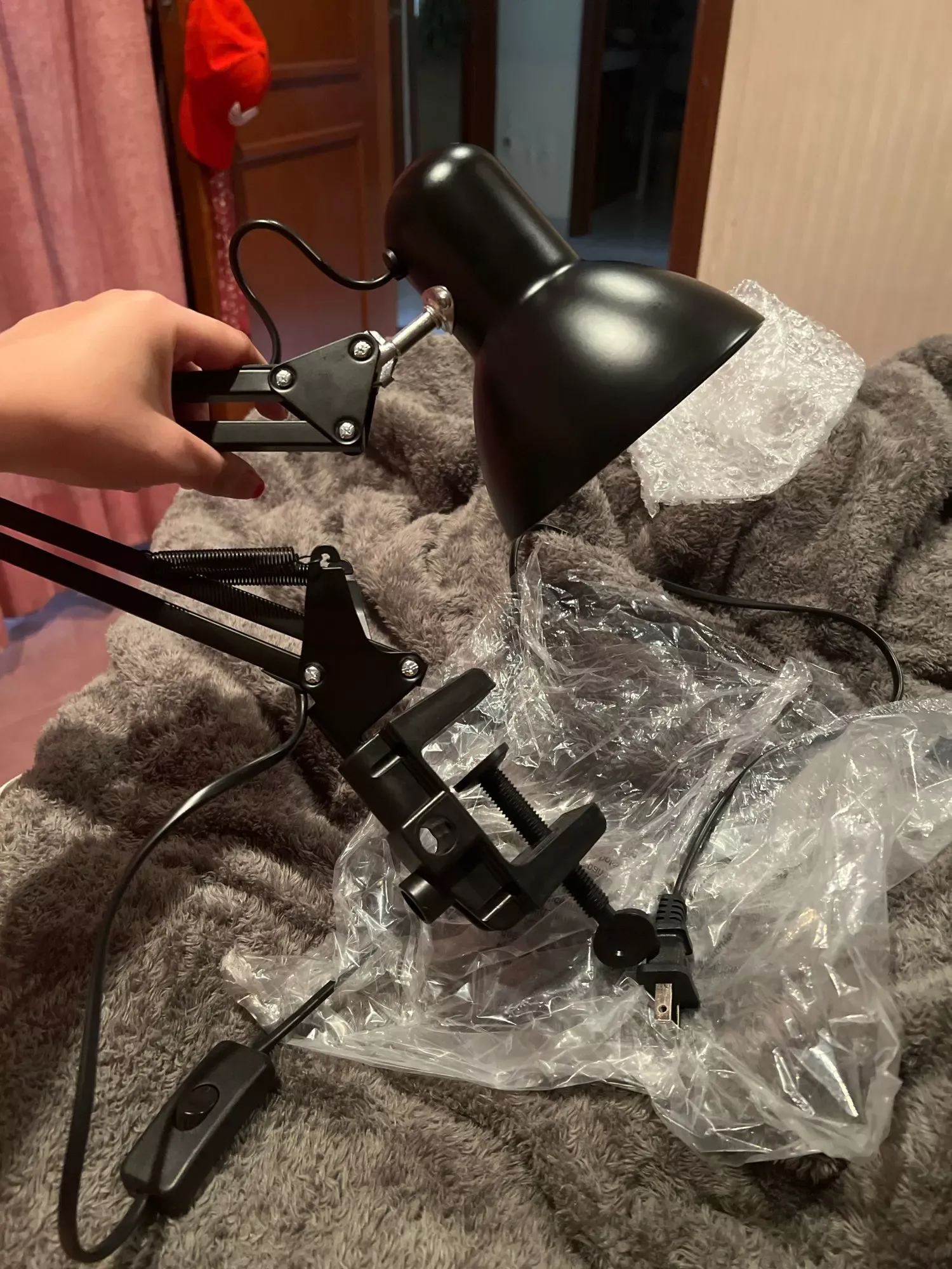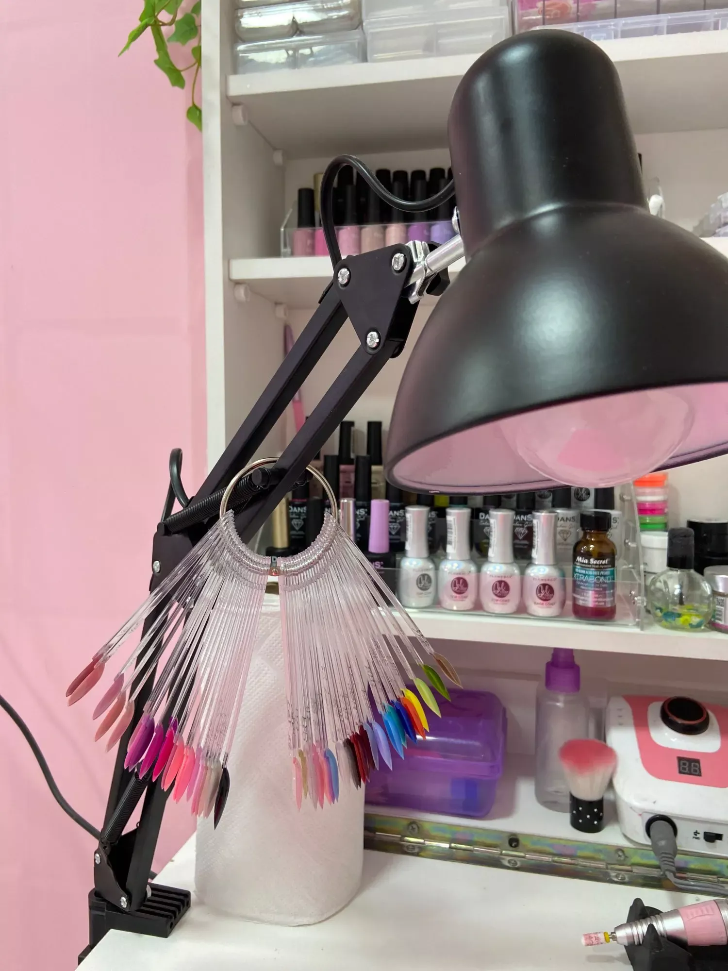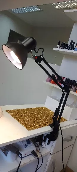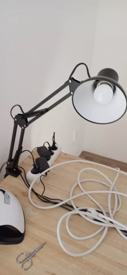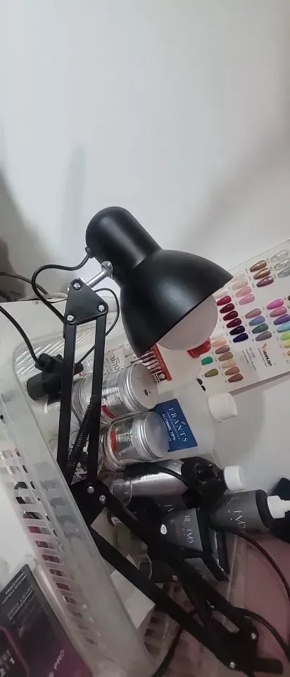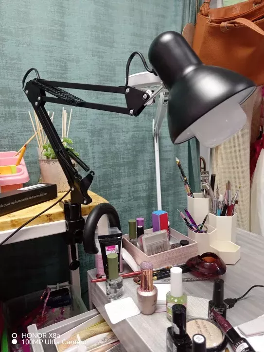 As a hobbyist and side hustler making press-on nail sets, I needed a good, adjustable lamp for my work area. I appreciate that it’s not bulky and has a clamp, allowing me to use ample table space for all my supplies. After reading reviews about the power switch on the cord, I ordered LED bulbs controllable via my phone or remote, hiding the cord behind my desk while still easily managing on/off, warmth, and brightness.