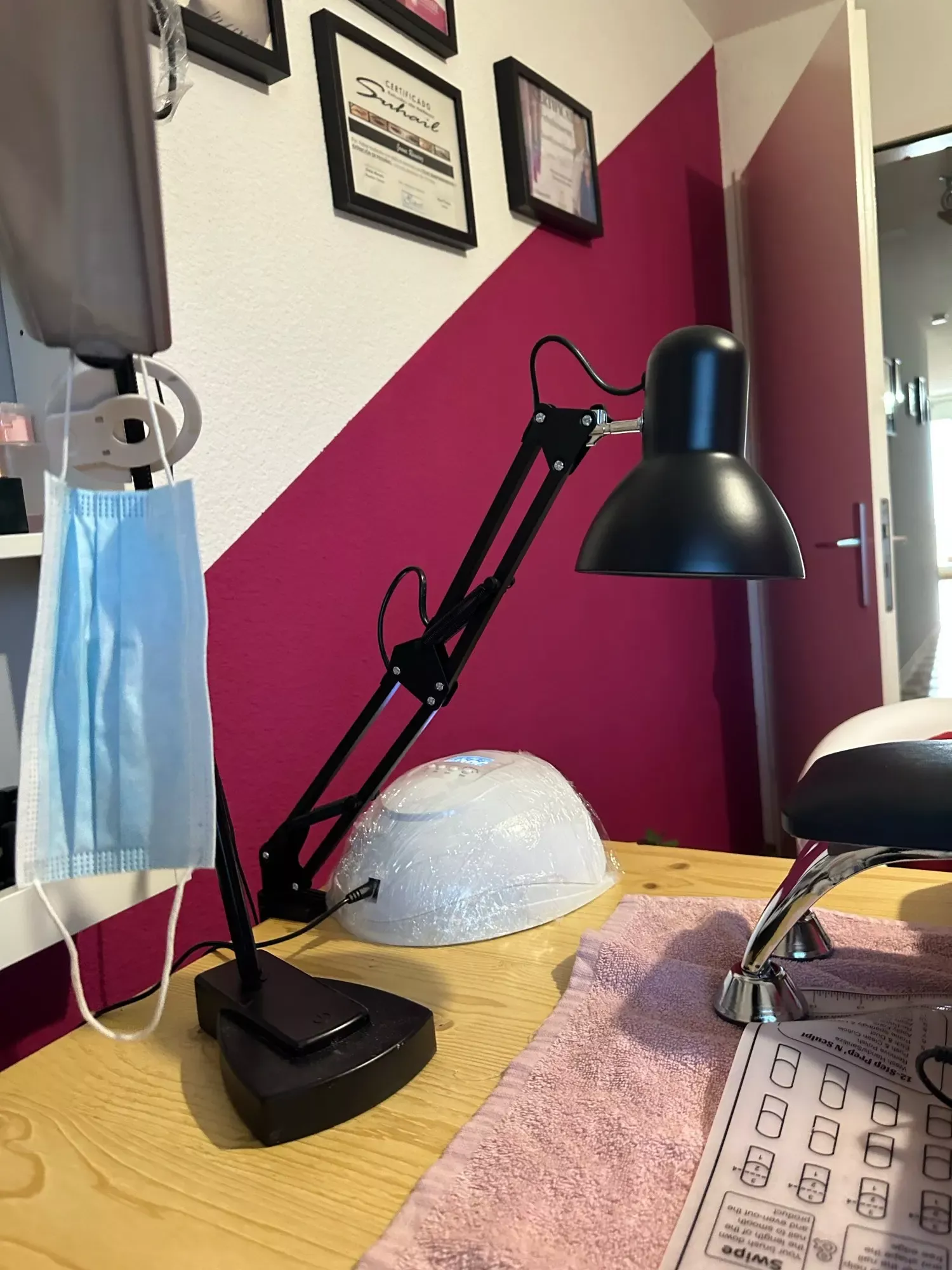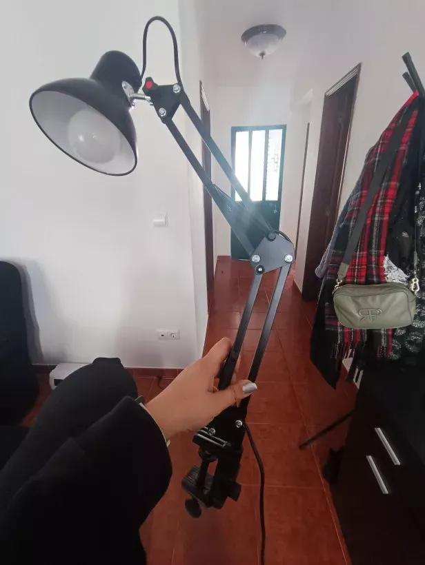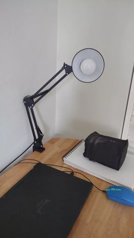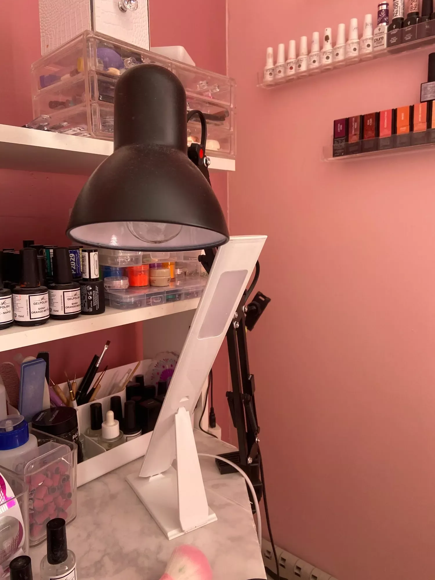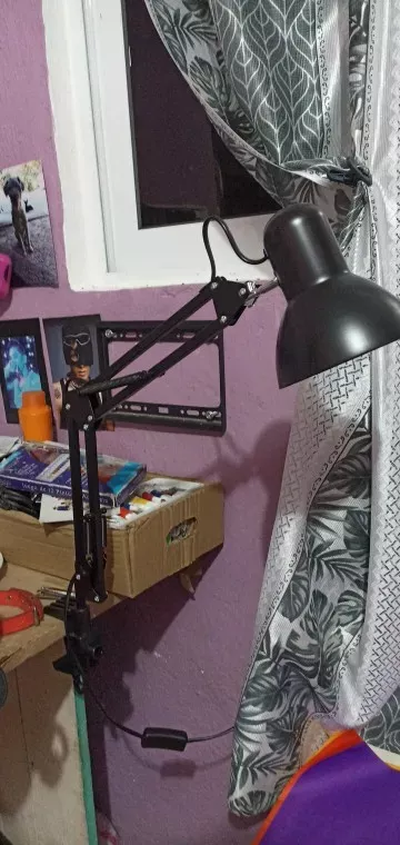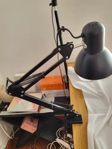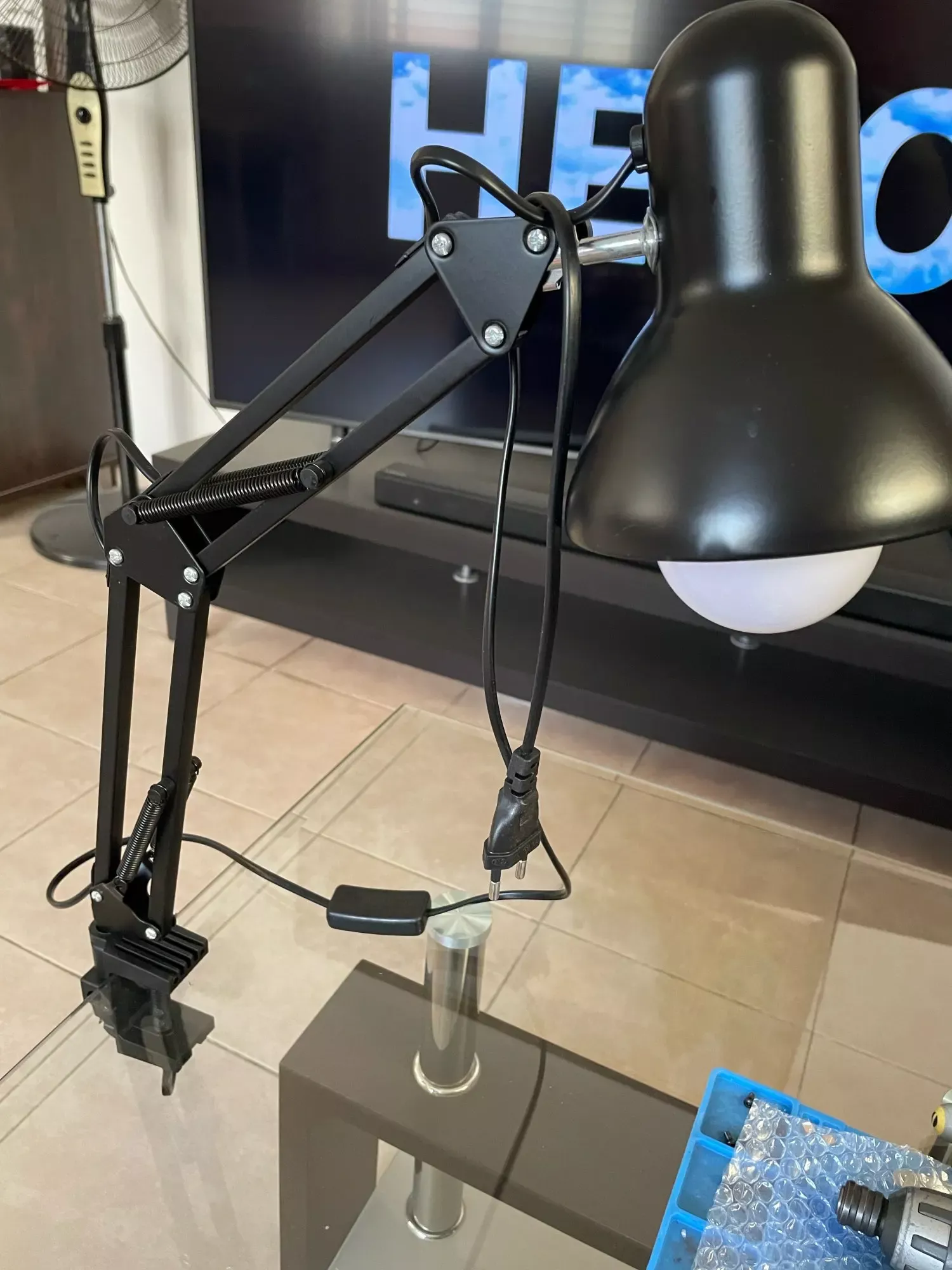 As a hobbyist and side hustler making press-on nail sets, I needed a good, adjustable lamp for my work area. I appreciate that it’s not bulky and has a clamp, allowing me to use ample table space for all my supplies. After reading reviews about the power switch on the cord, I ordered LED bulbs controllable via my phone or remote, hiding the cord behind my desk while still easily managing on/off, warmth, and brightness.