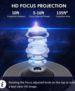 - HD projection with adjustable focus for clear and vivid images
