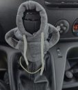 These are cute little sweatshirts that go over the stick shift. My husband thinks they’re silly, but I find them cute and they bring a smile to my face. They are true sweatshirts with arms, pockets, a hood, and pull cords for the hood.