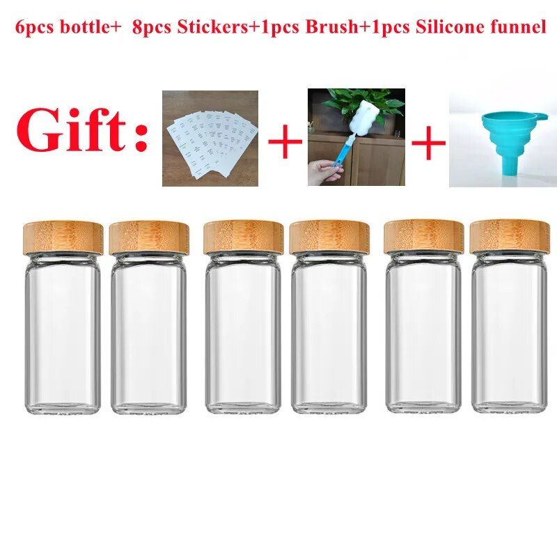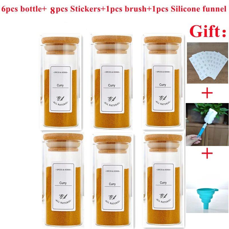 - Complete Set: Comes with 6 jars, 6 stickers for labeling, a handy brush, and a silicone funnel for easy filling.