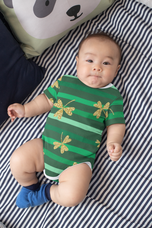 The Onesie is made out of butter soft fabric, and will keep your baby comfortable all day. It also has has crotch-snap closures, so changing and dressing your little one will be a breeze.