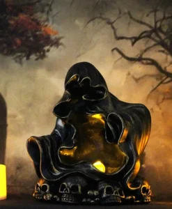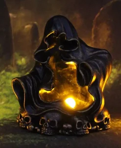 Add a touch of gothic charm to your home or garden with this Gothic Reaper Statue and let its haunting glow create an enchanting atmosphere.