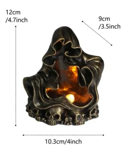 Envelop your space in an eerie ambiance with this Gothic Reaper Statue. Featuring a skull pattern and a mysterious faceless design, it emits a soft glow at night, adding a touch of fantasy and spookiness to your decor. Perfect for creating an ominous atmosphere, this statue is both durable and captivating, making it an ideal addition for any setting.