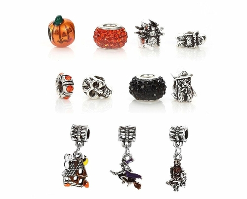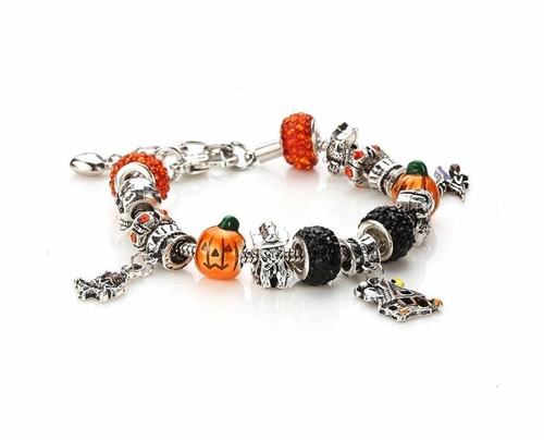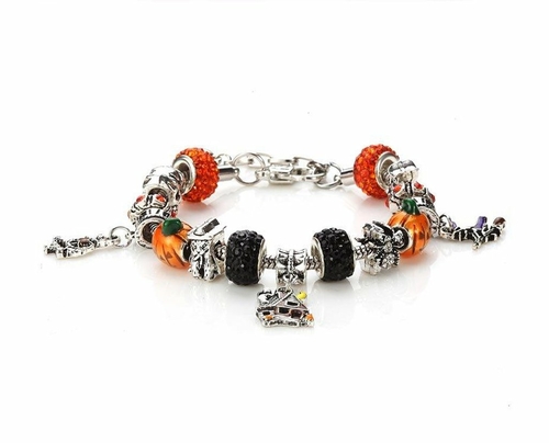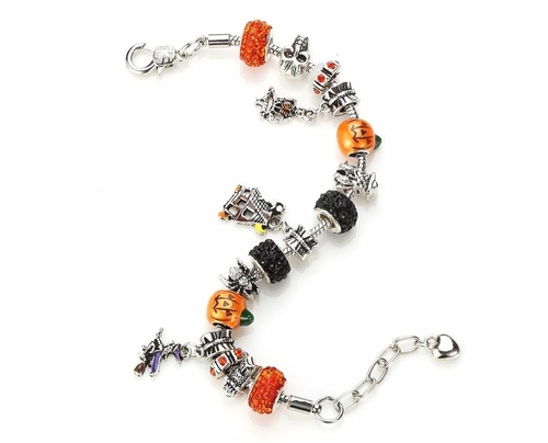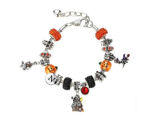 This fun, seasonal Novadab bracelet is perfect for the Halloween lover in your life! It features four classic Halloween symbols: a skull, cat, spider, and an owl plus three hanging “spooky” charms and multiple Shamballa beads all mingling with glitzy black and orange rhinestones.