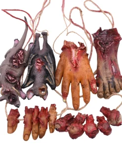 - Design: Includes fake dead mouse, bat, bloody hand, and feet, all designed to look creepy and realistic.