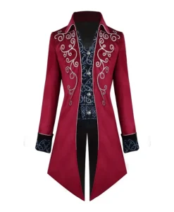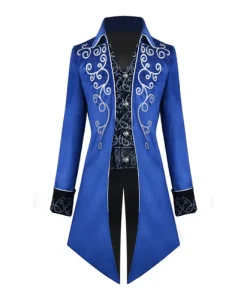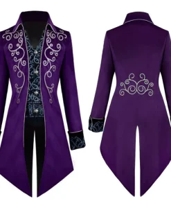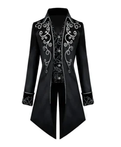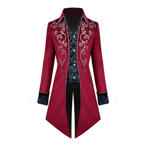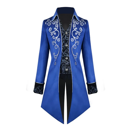 ★Halloween Costumes for Men: Unique renaissance vintage long tailcoat for mens/males/teens/adults, stand lapel collar, single breasted, full lining, button up, folded cuff, long sleeve, unique and exquisite embroidery on front and back, frock tail, slim fit. Dressup as beast/pirate/vampire/circus ringmaster/ringmaster/captain/king/with it.
