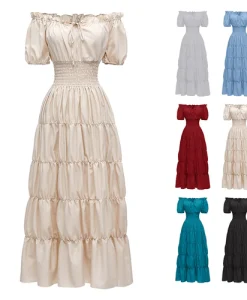 Unleash your inner royalty with this Halloween Women’s Medieval Princess Flare Sleeve Dress, perfect for costume parties, stage performances, or an elegant evening event. This long dress features flare sleeves and a waistband to accentuate your silhouette, offering a timeless look inspired by medieval princesses. Crafted from soft and breathable polyester, this dress ensures comfort while maintaining a regal appearance. Its solid color and flowing design make it versatile for both casual and dressy occasions.