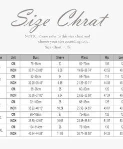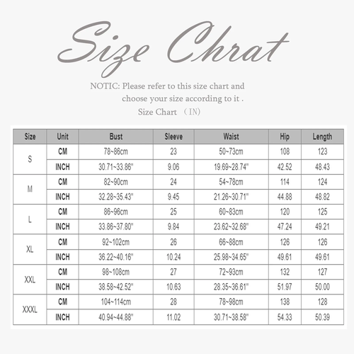 | Size | Bust | Sleeve | Waist | Hip | Length |