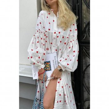 Step into a world where comfort meets style with our Heart Print Cotton A-line Long Sleeve Summer Dress. Designed for the modern woman who cherishes both style and comfort, this dress is a testament to timeless fashion. Its loose fit silhouette ensures a flattering look for all body types, making it a versatile addition to any wardrobe.