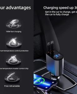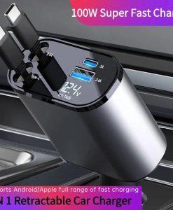 Experience the convenience of charging on the go with our High-Speed 4-in-1 Retractable Car Charger. Specially designed for modern-day travelers and tech-savvy individuals, this charger is a perfect blend of versatility and efficiency. Whether you’re commuting, on a road trip, or just need a quick charge, this charger is your ideal companion.