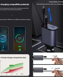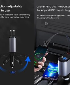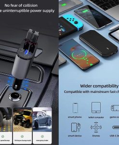 Don’t let your devices run out of power when you need them the most. Upgrade to our High-Speed 4-in-1 Retractable Car Charger today and enjoy the convenience of charging anywhere, anytime. Place your order now and experience the ultimate charging solution for your car!