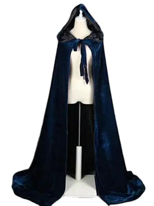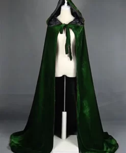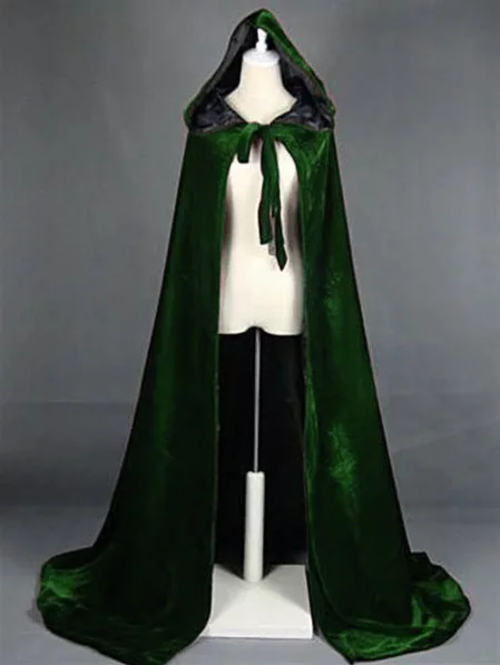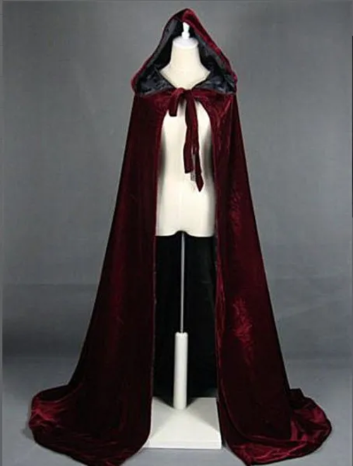 Hooded Cloak Long Velvet Cape Robe Green Black Red Halloween Carnival