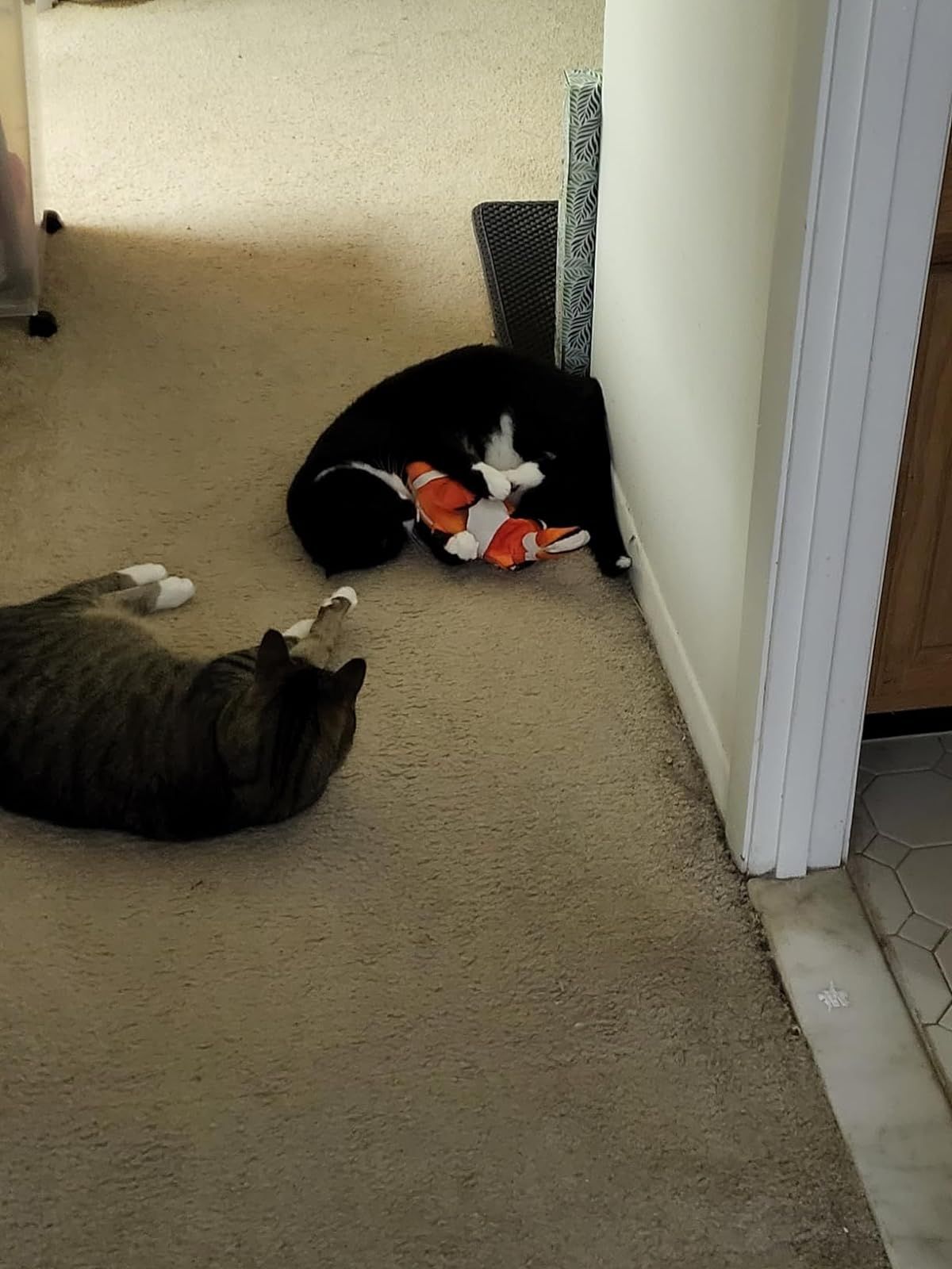 I wanted something to keep the cats busy. These flopping fish are the perfect toy. The cats absolutely love them. They’re rechargeable, which is really nice, and they turn off when the cats aren’t playing with them.