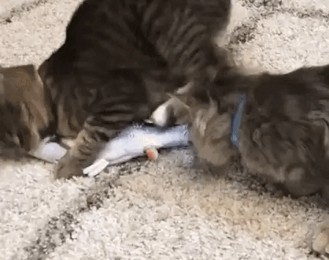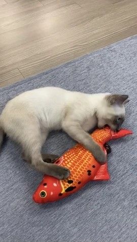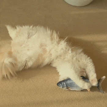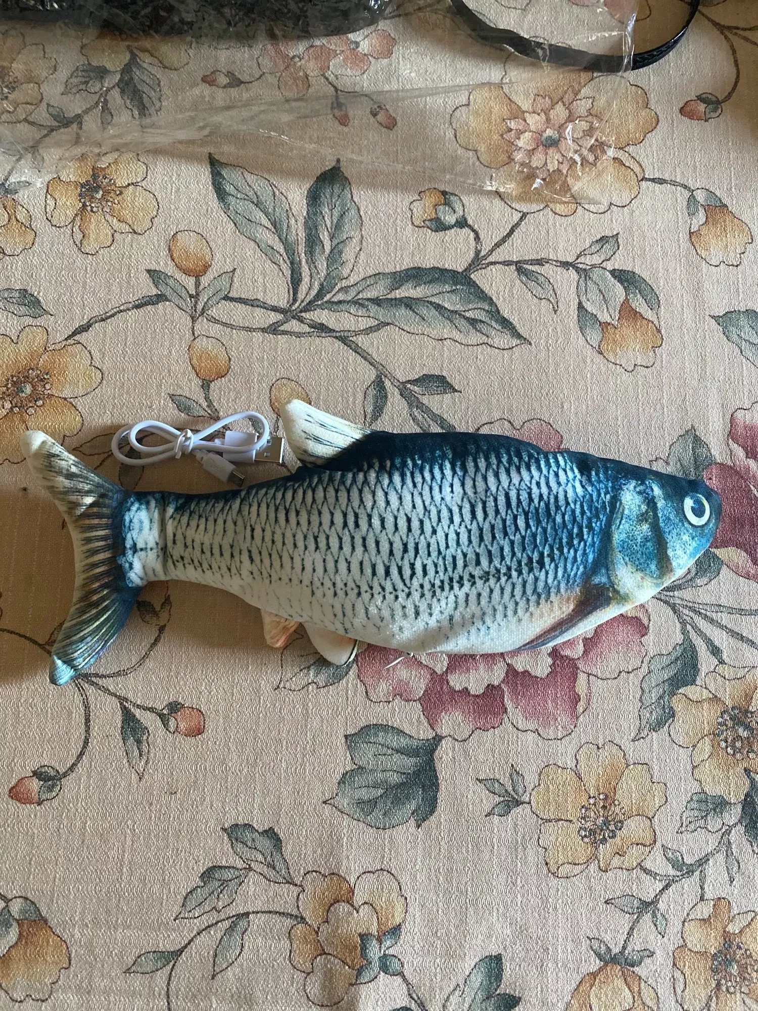 I have two cats. One plays with any toy I buy, turning all sorts of things like straws, plastic spoons, ribbons, etc., into toys. The other doesn’t play with anything. I took a chance on the electric floppy fish cat toy. She stared at it at first, then pounced on it and wouldn’t let go. She carries it around and won’t let our other cat have it. I’m glad she finally found a toy she really likes and keeps her busy.