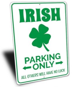 Categories: Home & Garden, Home Decor, Irish & Celtic, Personalized Gifts, St. Patrick's Day, Wall Art Tags: color_White, home decor, irish, Parking Sign, Parking Signs, St. Patricks Day, wall décor