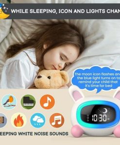 This alarm clock stands out with its combination of functionality, style, and child-friendly design. It’s not just an alarm clock; it’s a sleep trainer, a night light, and a sound machine, all rolled into one adorable package.