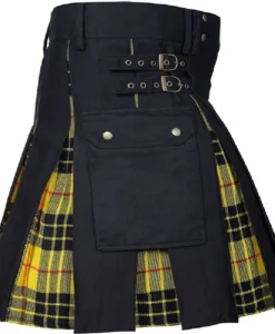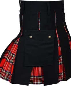 Upgrade your wardrobe with this versatile Men’s Utility Kilt, in a durable jeans hybrid design. Combining the classic style of a kilt with modern utility features, this modern box kilt is perfect for both casual wear and formal occasions. Designed for comfort and practicality, it features deep pockets for storing essentials and sturdy belt loops for added functionality. The fabric ensures comfort, making it ideal for everyday use or outdoor activities. Whether you’re attending a Highland festival, a casual gathering, or simply want to showcase your Scottish heritage, this utility kilt delivers both style and function.