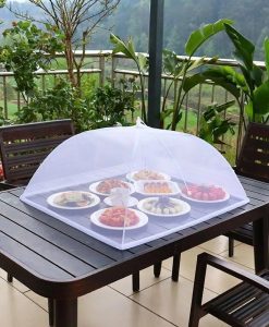 Our Food Cover isn’t just any ordinary meal guard. It’s built with a sophisticated lace trim, adding a touch of elegance to your dining setup. The material is sturdy yet lightweight, making it easy to handle and perfect for any occasion. Whether you’re enjoying a sunny picnic, a cozy backyard BBQ, or simply keeping your fruit and vegetable spread fresh, our mesh cover provides the perfect shield.