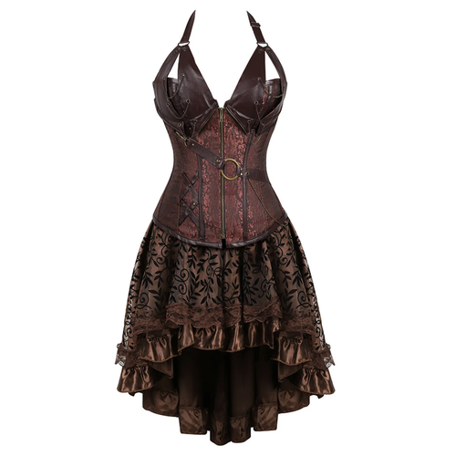 Unleash your inner pirate or steampunk adventurer with this Leather Pirate Corset Dress. Designed for women, this steampunk-inspired bustier features a structured silhouette to provide body shaping and support. The combination of leather, acrylic, and steel ensures durability and a unique vintage look, making this dress perfect for a variety of events, from casual outings to costume parties, steampunk conventions, and Renaissance fairs.
