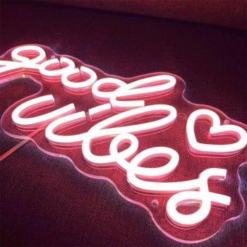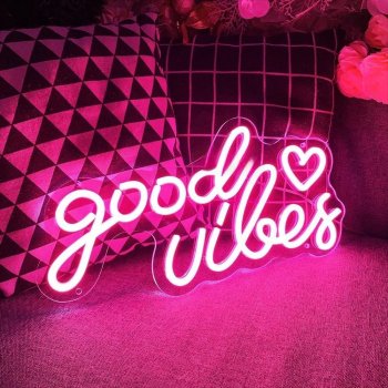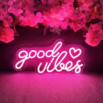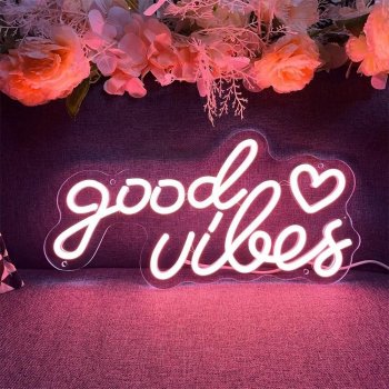 Embrace the beauty and vibrancy of our LED Neon “Good Vibes” Sign, and let it transform your space into a welcoming haven of good vibes and positivity. Whether it’s setting the mood for a party, adding a unique touch to your decor, or simply lighting up your everyday, this neon sign promises to be a captivating centerpiece. Order yours today and illuminate your world with style!