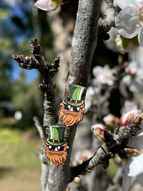 Leprechaun stud earrings comes as shown. A perfect way to show your luck of the Irish! Made from sustainably sourced wood and 90% recycled display cards, this laser-cut wood is extremely lightweight.