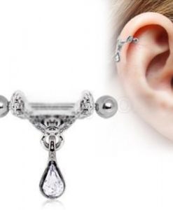 Celtic Floral Tiara Ear Cuff with Tear Drop Dangle