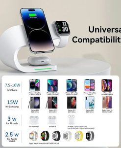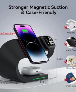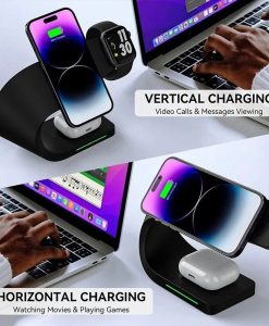 Introducing our innovative Magnetic Wireless Charging Stand, engineered to provide a seamless and swift charging solution for your entire Apple ecosystem. This powerful 15W charger is designed to cater to your iPhone 14, 13, 12, iWatch, and AirPods, ensuring that all your devices stay powered up and ready to go. Its compact and sleek design not only saves space but also adds a touch of elegance to your desk or bedside table.