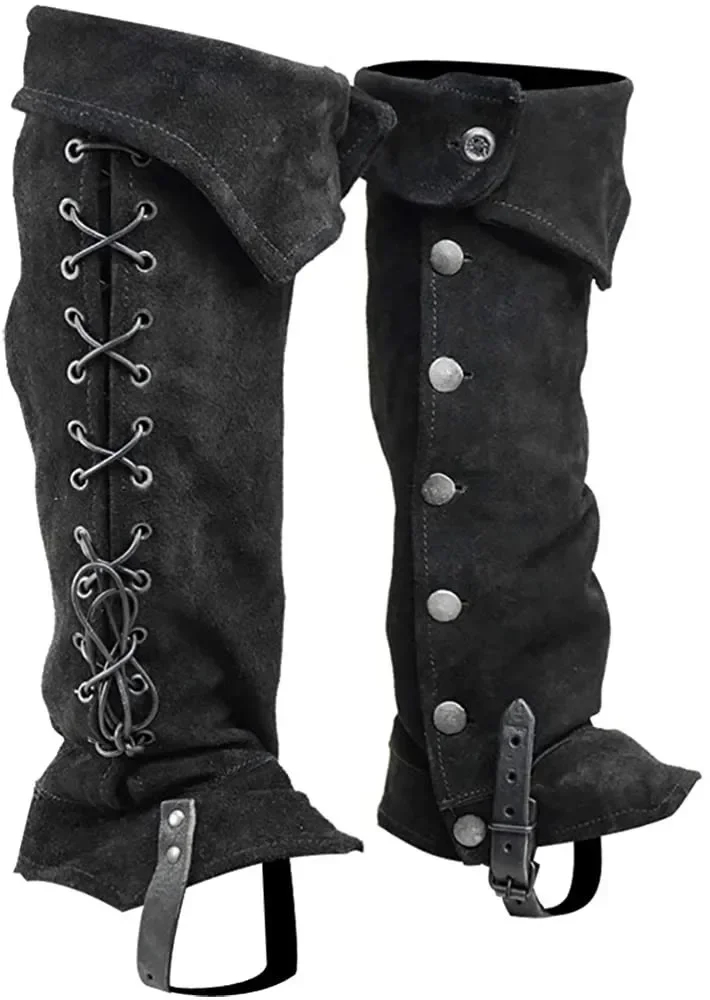 These medieval boot /leg armor coverings allow you to dress the part while giving you the ability to wear your own comfortable shoes! Available in both black and brown, and also black and brown adjustable.