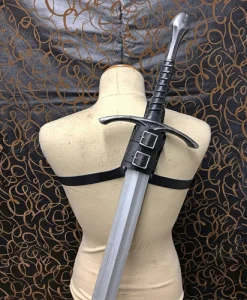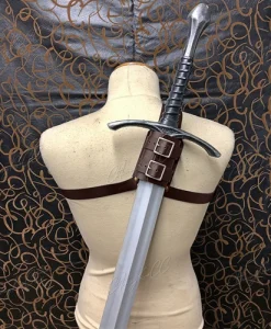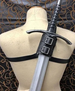 This Medieval Shoulder Strap Sword Holder Sheath Scabbard is a must-have accessory for any medieval or fantasy role-playing enthusiast, providing both practicality and style.