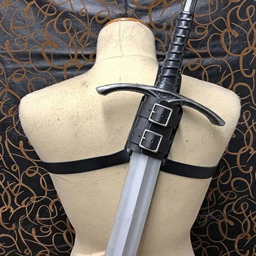 This Medieval Shoulder Strap Sword Holder Sheath Scabbard is a must-have accessory for any medieval or fantasy role-playing enthusiast, providing both practicality and style.