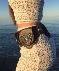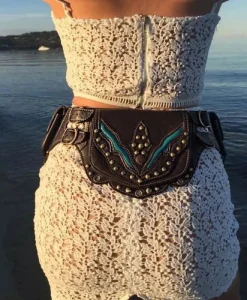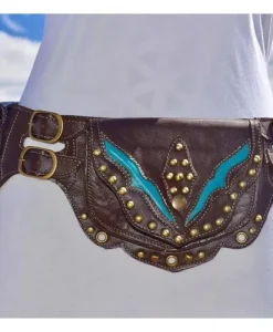 - Design: This unique steampunk and bohemian-inspired belt bag features intricate detailing with contrasting blue trim, adding a bold, stylish accent.