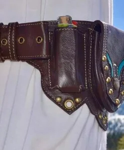 This faux leather utility belt bag is a stylish and functional accessory for those who enjoy medieval, steampunk, and bohemian aesthetics!