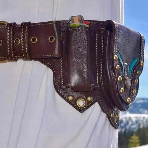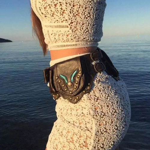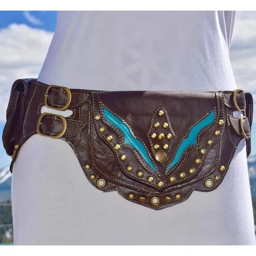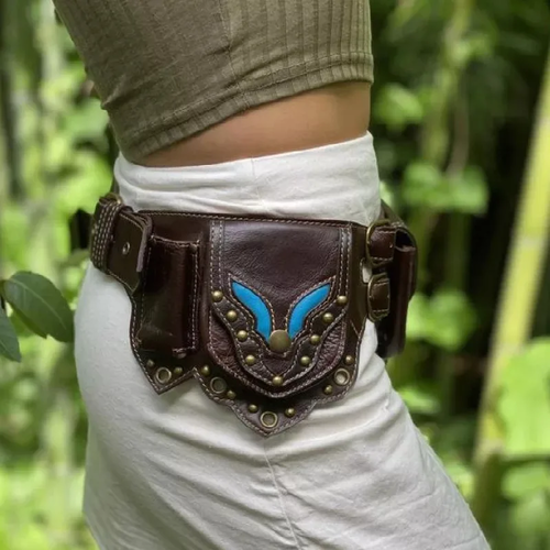 - Design: This unique steampunk and bohemian-inspired belt bag features intricate detailing with contrasting blue trim, adding a bold, stylish accent.