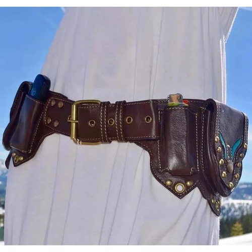 This faux leather utility belt bag is a stylish and functional accessory for those who enjoy medieval, steampunk, and bohemian aesthetics!