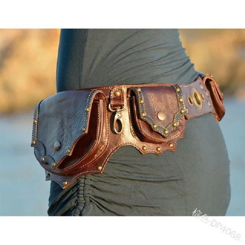 This Medieval Steampunk Utility Hip Belt is crafted from high-quality faux leather and designed with multiple pockets, making it both functional and stylish. Perfect for festivals, Viking reenactments, cosplay, or daily wear, this hip belt offers a practical solution for carrying small items while adding a touch of medieval or steampunk flair to any outfit.
