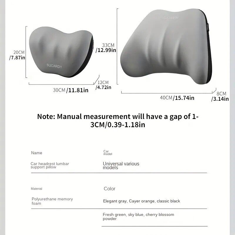 Turn your car into a haven of relaxation. Add the Memory Foam Car Seat Lumbar and Headrest Support Pillow to your cart now and embark on more comfortable journeys ahead!
