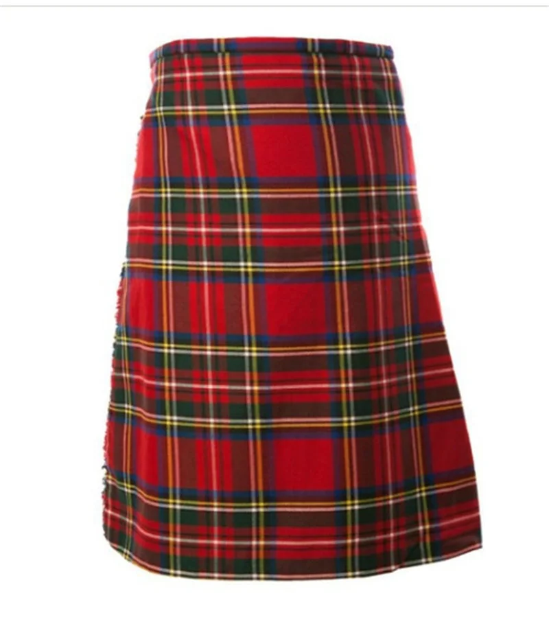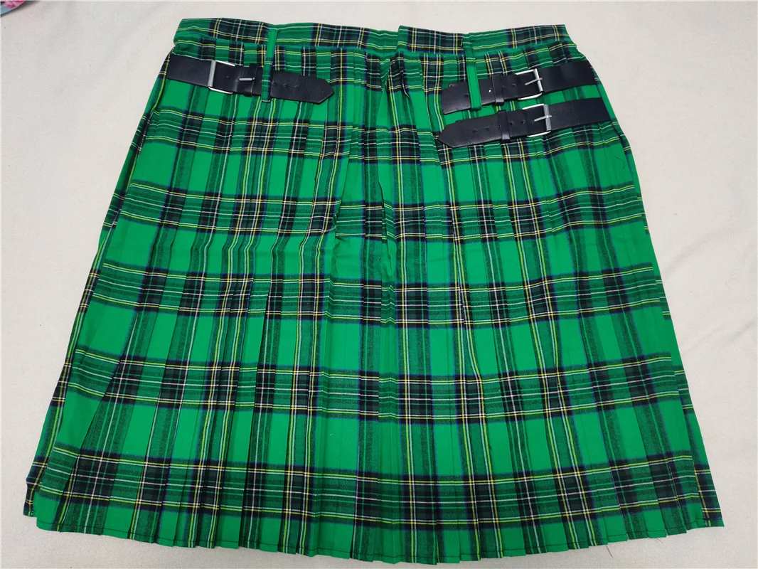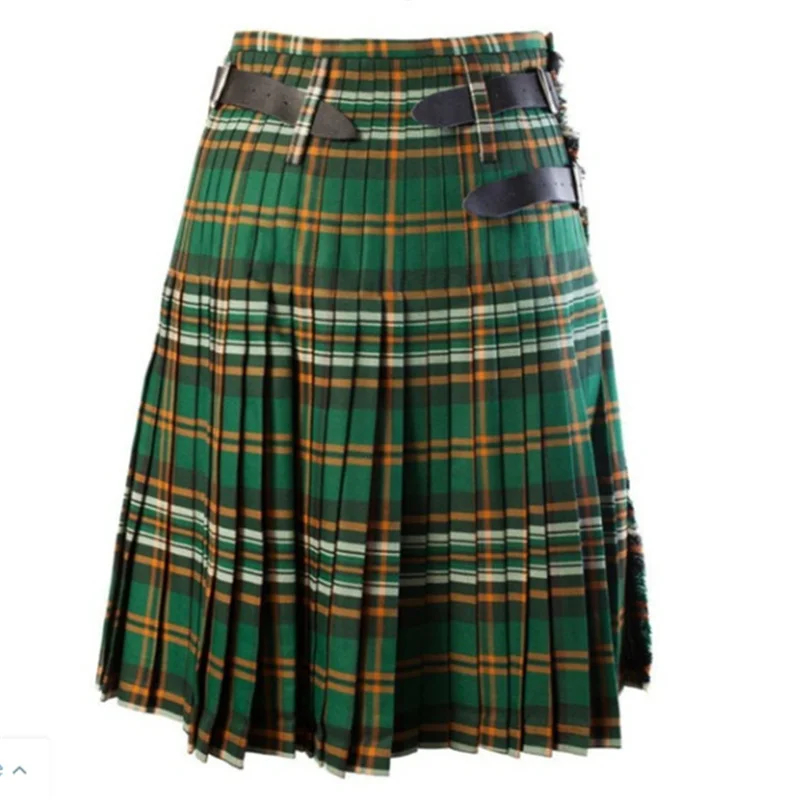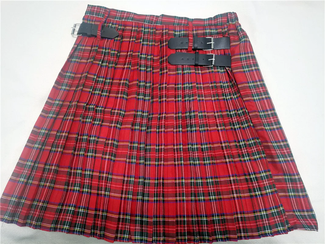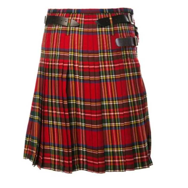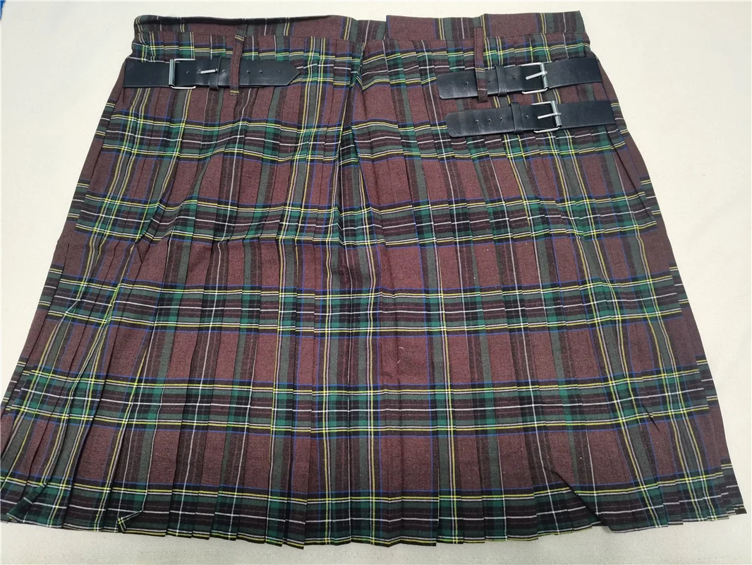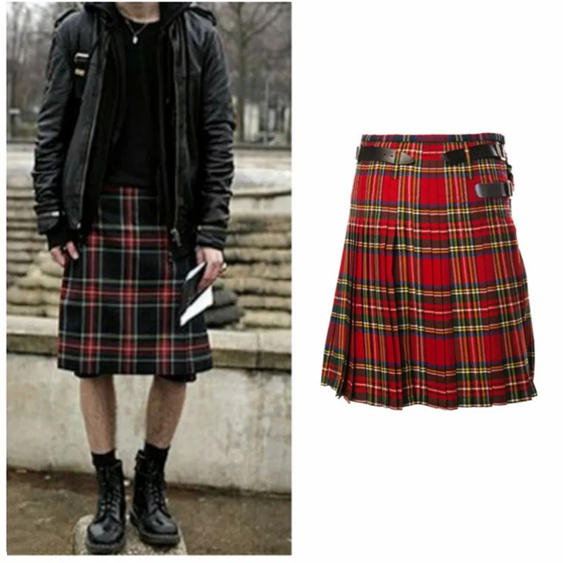 Men Cotton Belted Pleated Plaid Kilt Scottish Traditional National Costume Red Plaid Scottish Skirts Punk Hip Hop Clothing Check out our version of a traditional highland tartan kilt. A man’s kilt is a traditional garment originating from Scotland, characterized by its distinctive pleated design and rich cultural heritage. Made from woolen fabric, typically tartan, which features a unique pattern of horizontal and vertical stripes in various colors, the kilt wraps around the waist and falls to the knees. It is secured by a set of buckles or straps on the side and often worn with a sporran, a pouch that hangs at the front.
